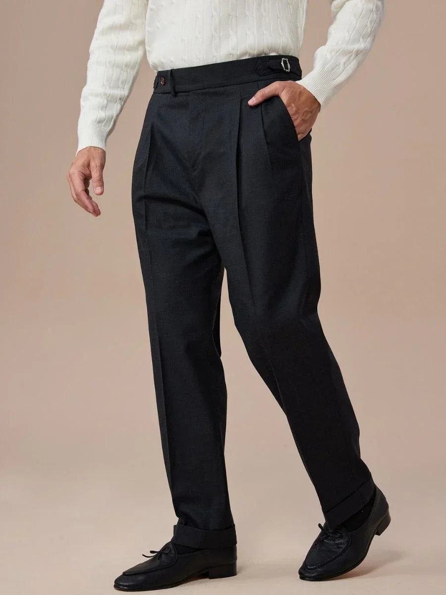 The Marini Dervio Trousers offer a timeless straight-leg cut with a mid-to-high waist for a structured yet comfortable fit. Designed with precision, these trousers feature pressed creases and a premium wool blend, ensuring durability and elegance for both business and formal wear.