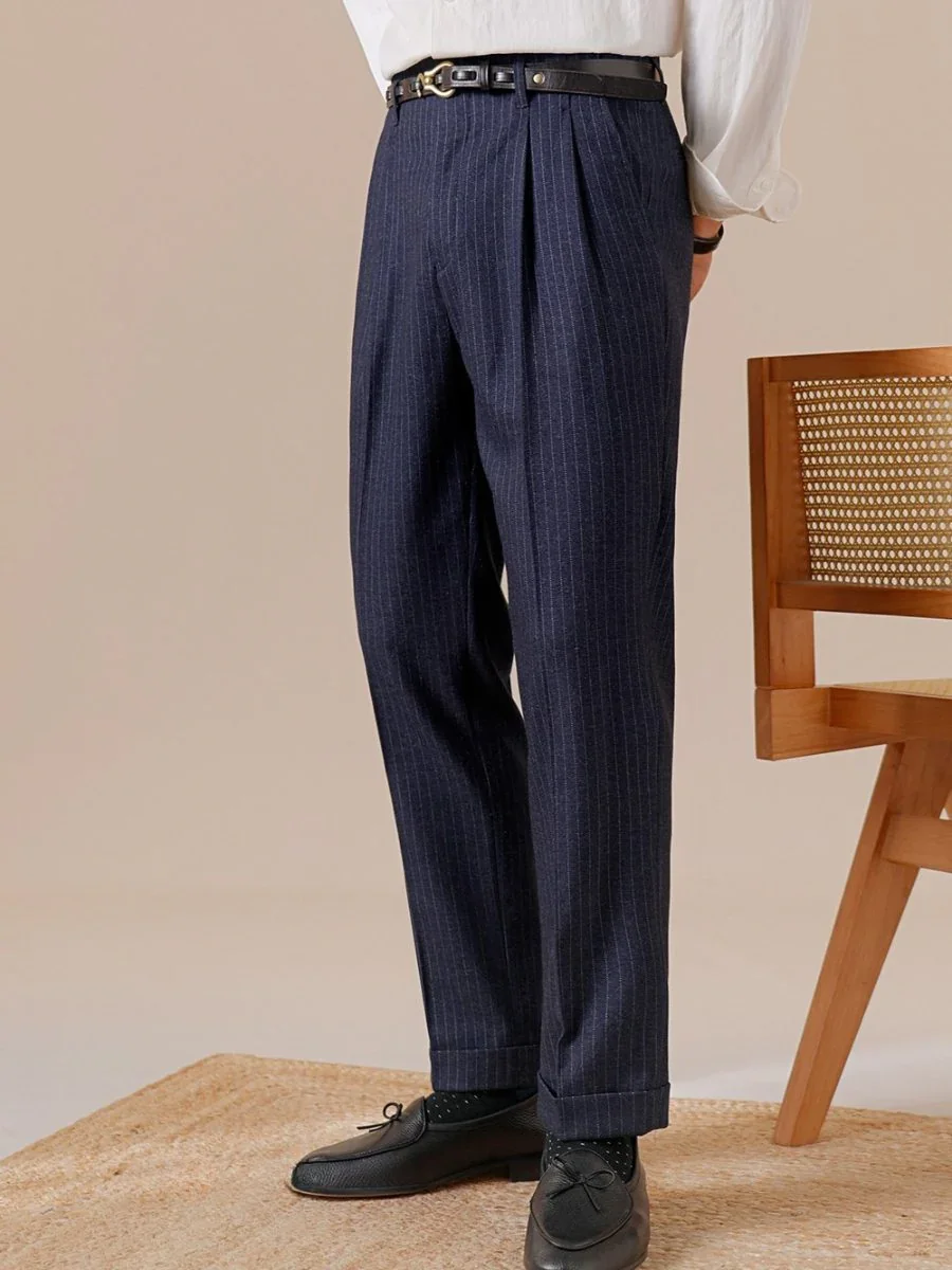 Relaxed-fit pleated trousers with a classic Hollywood waist. Versatile and elegant, ideal for smart casual looks.