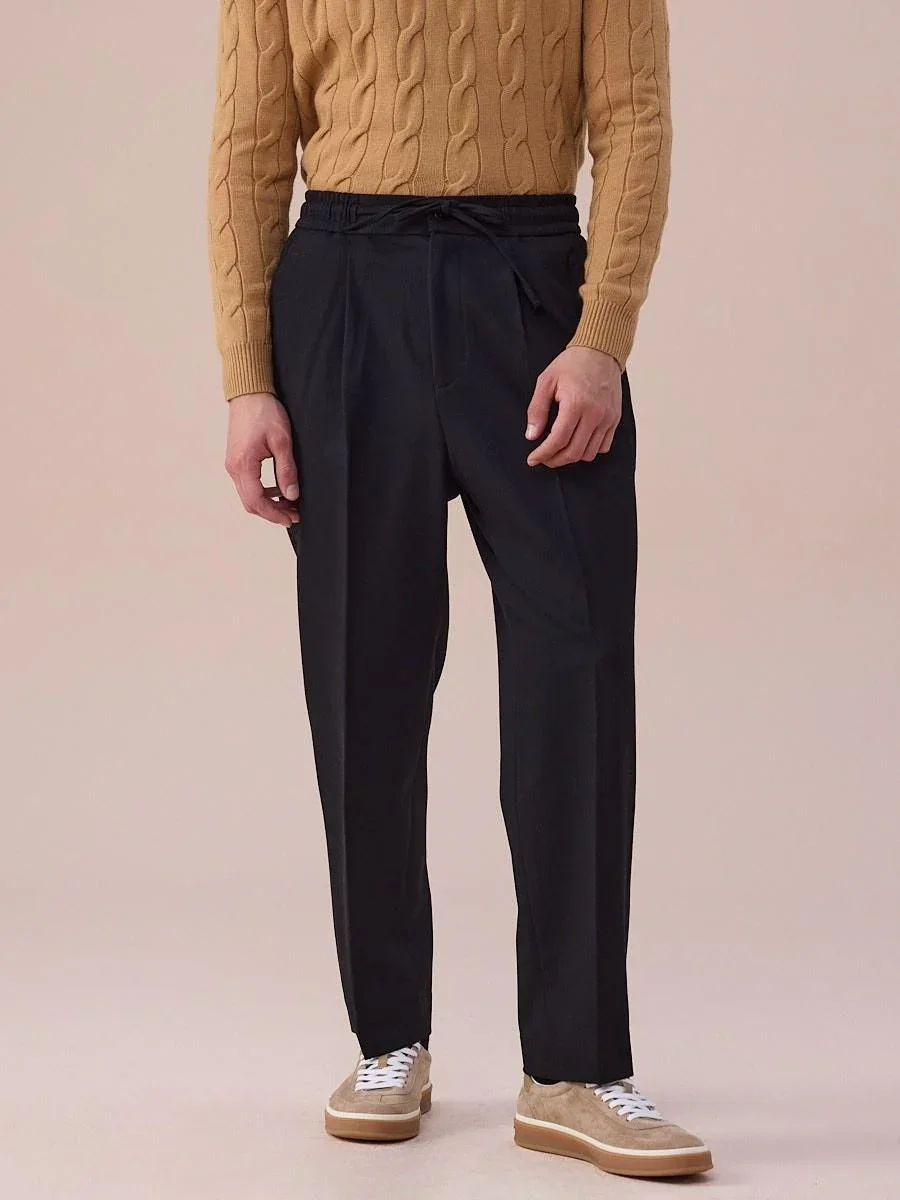 A refined take on modern tailoring combining comfort and structure. Clean front crease and adjustable drawstring waist for a versatile, elevated fit suitable for both business and smart casual outfits.
